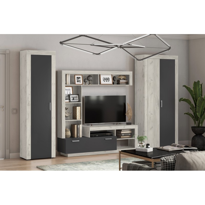 Гостиная арт.24.78.5 фасад ЛДСП дуб крафт белый /каркас ЛДСП графит 3189х416хh2070мм Ангара