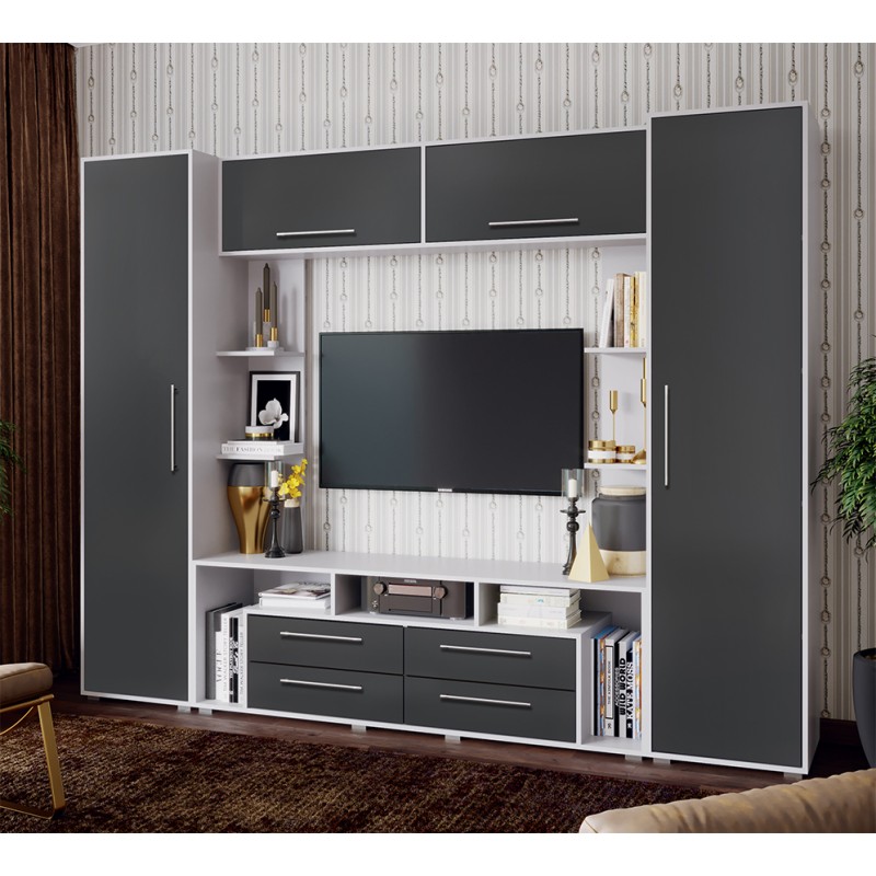 Гостиная арт.24.68.6 фасад МДФ графит софт/каркас ЛДСП белый 2700х440хh2100мм (ниша под ТВ 1700х1168мм) Гармония