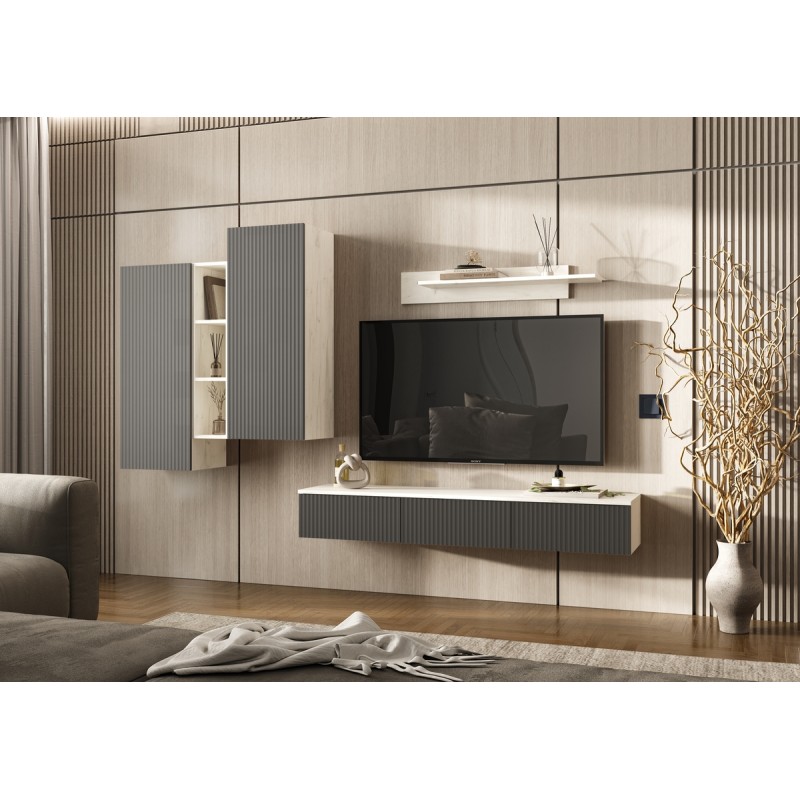 Гостиная арт.24.84.8.1 фасад МДФ графит софт/каркас ЛДСП дуб крафт белый Оскар