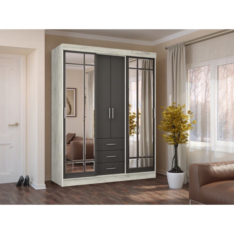 Шкаф-купе 4-х. дв. арт.24.48.1 ЛДСП графит/дуб крафт белый 1700х574хh2220мм Маэстро