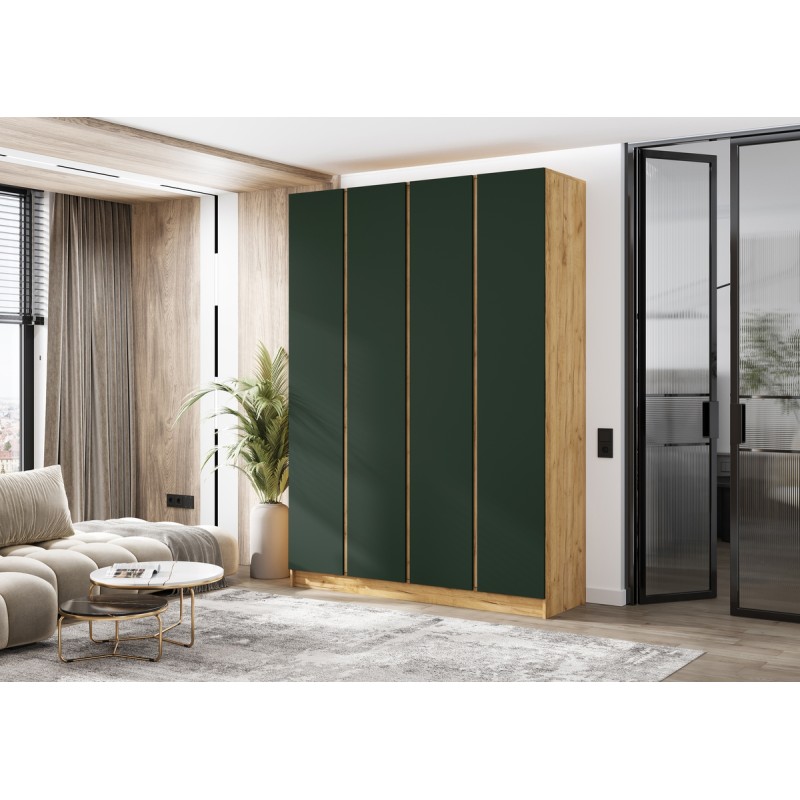 Шкаф 4-х. дв. арт.24.207.6 фасад ЛДСП изумрудный/каркас ЛДСП дуб крафт 1600х506хh2236мм вставка дуб крафт Кельвин