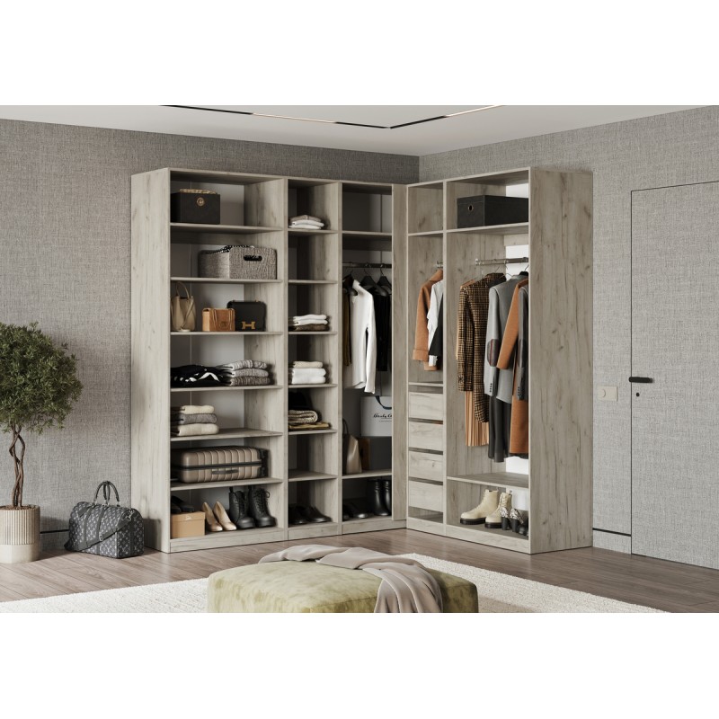 Гардеробная система арт.24.117.3 каркас ЛДСП дуб крафт серый 2100х1800х490хh2236мм вариант №3 Ларго