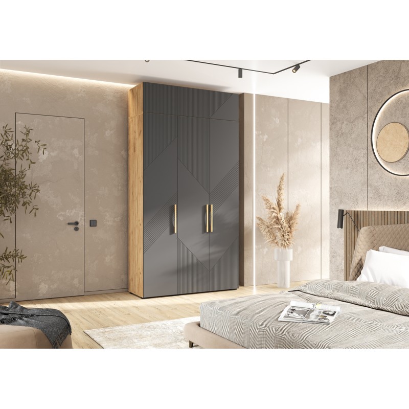 Шкаф 3-х. дв. арт.24.79.22 фасад МДФ браш графит/каркас ЛДСП дуб крафт 1350х506хh2600мм Ирис