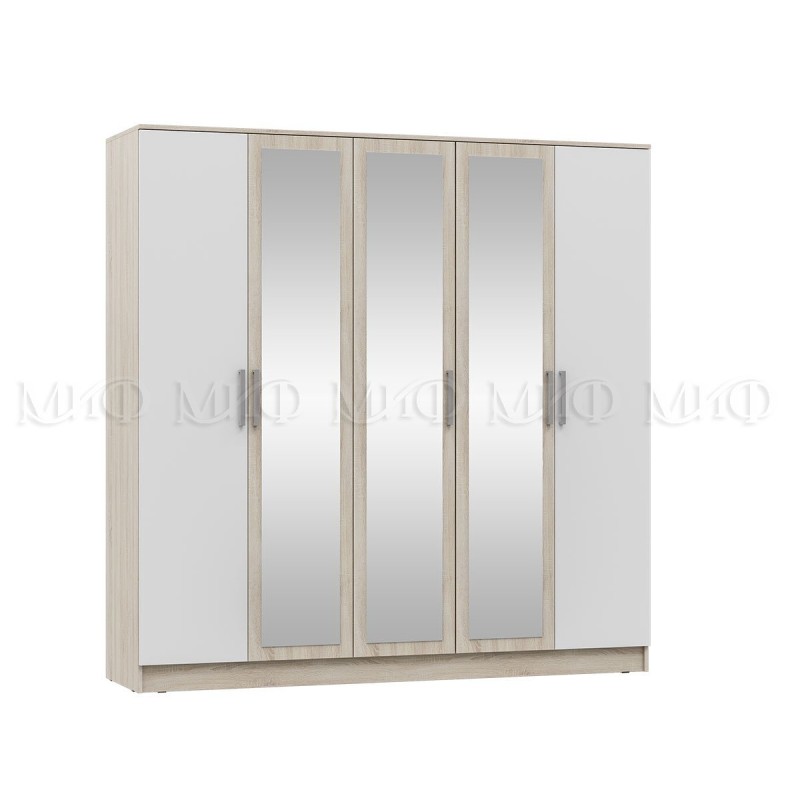 Шкаф 5-ти дв. арт.24.123.10 фасад ЛДСП белый глянец/каркас ЛДСП дуб сонома 2000х520хh2016мм Мартина