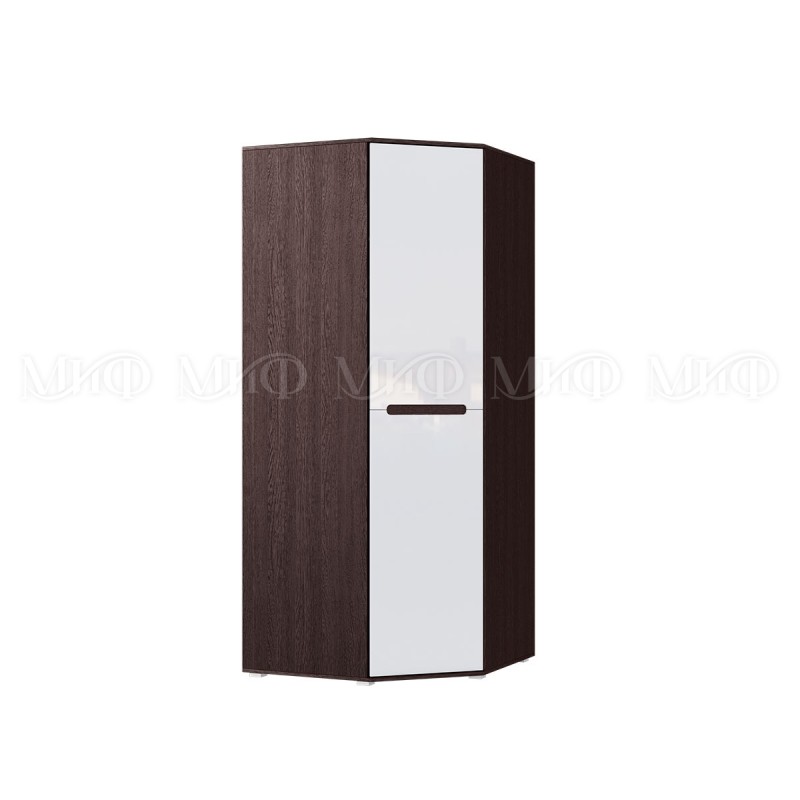 Шкаф угловой арт.24.148.9 фасад МДФ белый глянец холодный/ каркас ЛДСП венге 874х874хh2236мм Ким