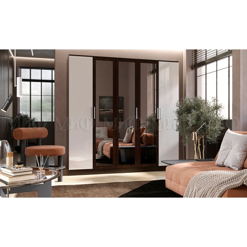 Шкаф 5-ти дв. арт.24.123.10 фасад ЛДСП белый глянец/каркас ЛДСП венге 2000х520хh2016мм Мартина