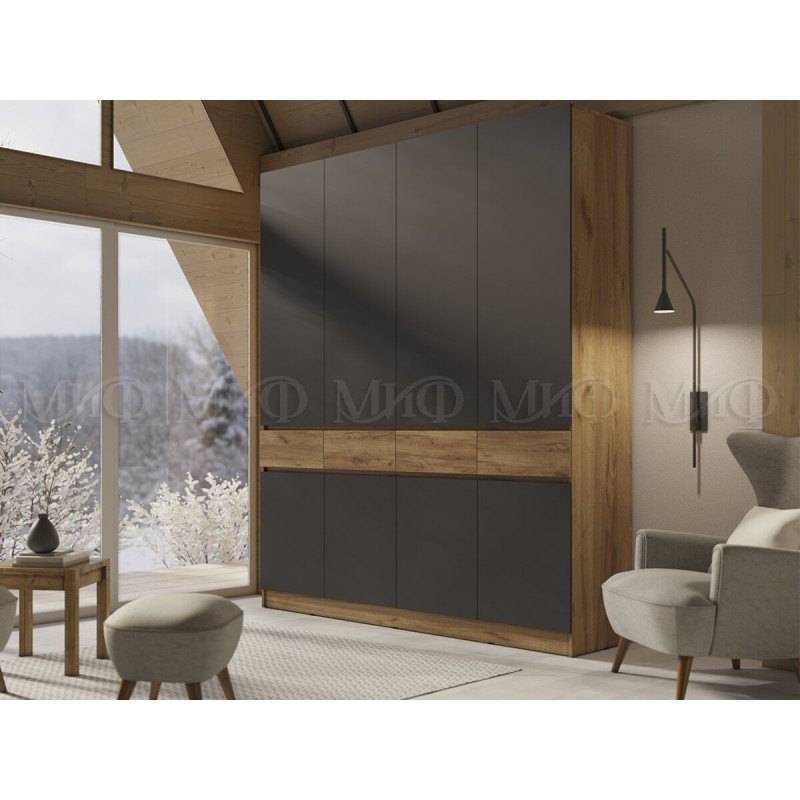 Шкаф 4-х. дв. арт.24.17.1.7 фасад ЛДСП графит-дуб крафт/каркас ЛДСП дуб крафт 1998х520хh2400мм Роджинамиф