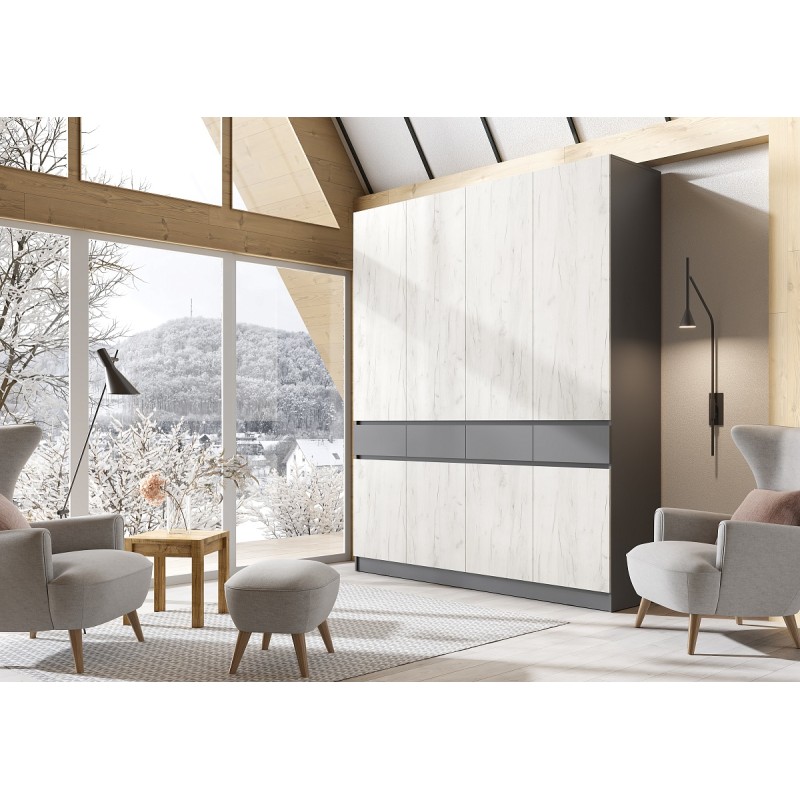 Шкаф 4-х. дв. арт.24.17.1.7 фасад ЛДСП дуб крафт белый-графит/каркас ЛДСП графит 1998х520хh2400мм Роджинамиф