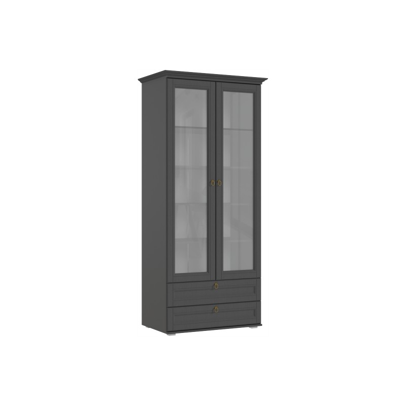 Шкаф 2-х. дв. со стеклом арт.24.121.3 МДФ графит текстурный/ЛДСП графит 900(975)х528(570)хh2116(2150)мм Престиж-1