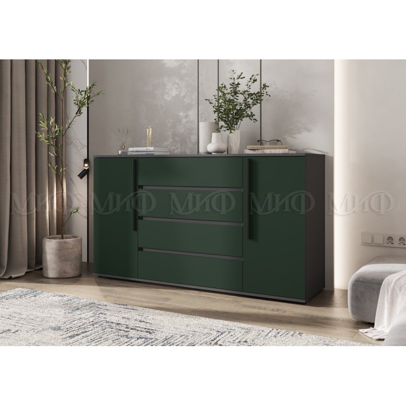 Комод арт.24.9.20 фасад ЛДСП изумрудный/каркас ЛДСП графит 1600х450хh900мм Норд