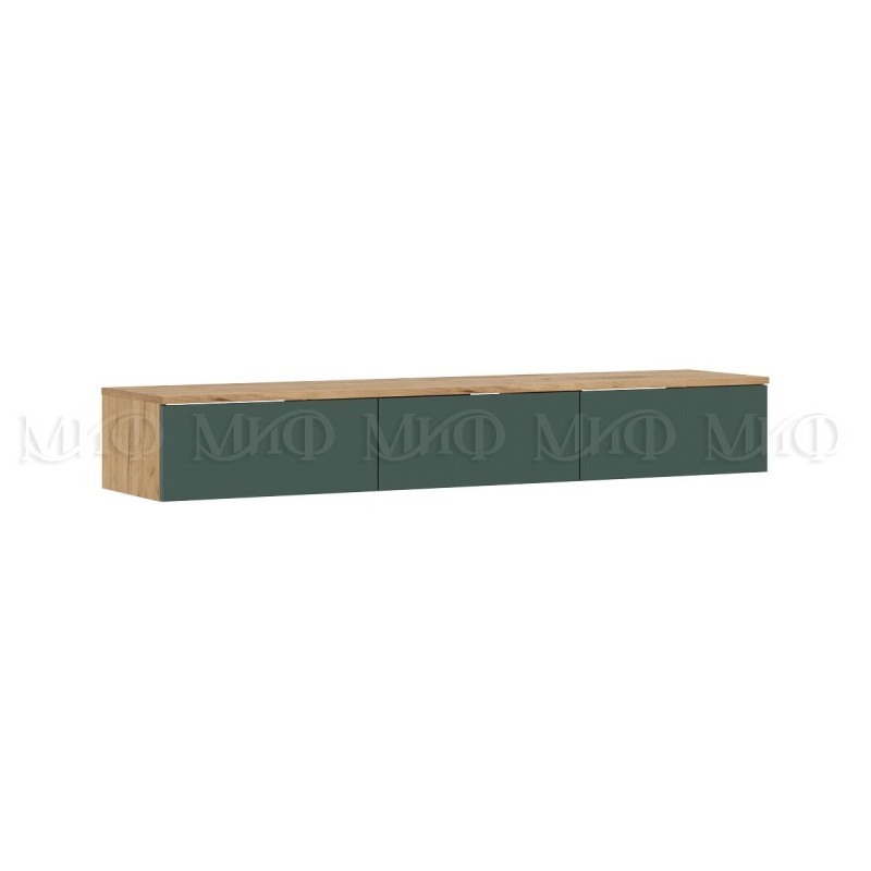 Полка навесная косметическая арт.24.9.22 фасад ЛДСП изумрудный/каркас ЛДСП дуб крафт 1388х350хh220мм Норд