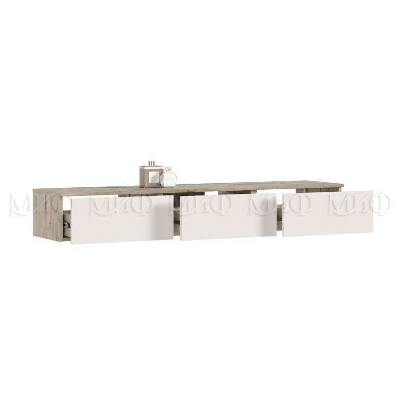 Полка навесная косметическая арт.24.9.22 фасад ЛДСП кашемир/каркас ЛДСП дуб крафт серый 1388х350хh220мм Норд