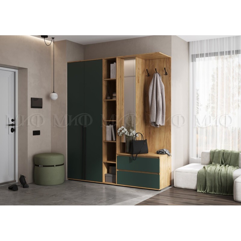 Прихожая арт.24.9.11 фасад ЛДСП изумрудный/каркас ЛДСП дуб крафт 1900х510хh2236мм Норд