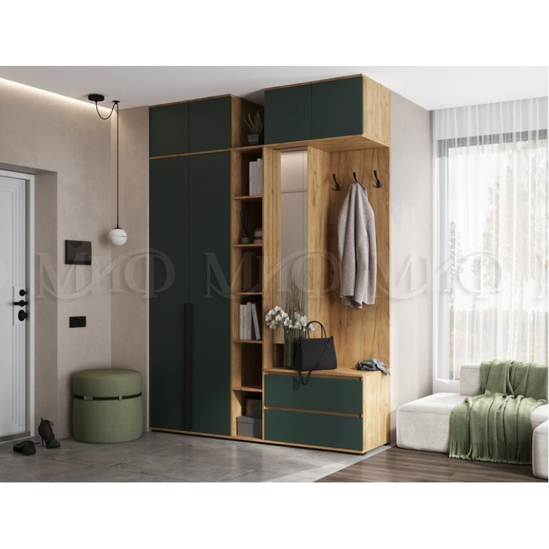 Прихожая арт.24.9.11.1 фасад ЛДСП изумрудный/каркас ЛДСП дуб крафт 1900х510хh2654мм Норд