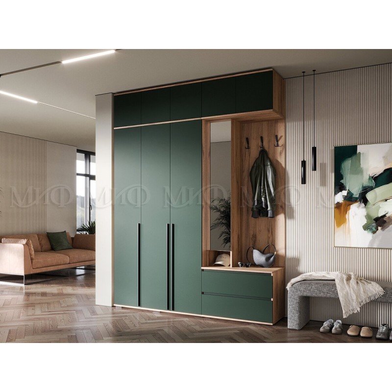 Прихожая арт.24.9.15 фасад ЛДСП изумрудный/каркас ЛДСП дуб крафт 2000х510хh2654мм Норд