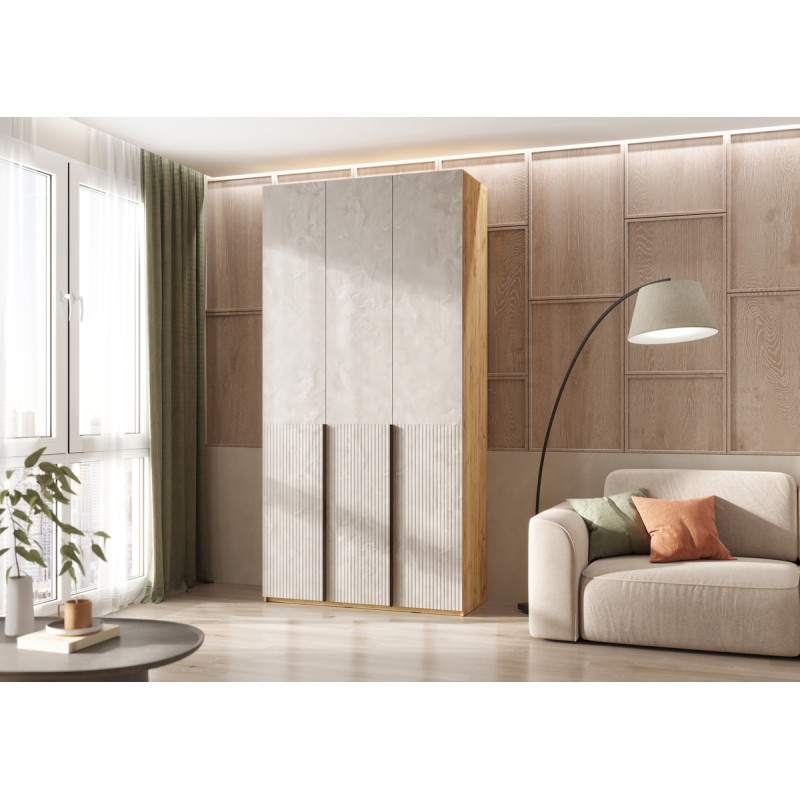 Шкаф 3-х. дв. арт.24.42.1 фасад МДФ мальта/каркас ЛДСП дуб крафт 1200х508хh2400мм с двумя ящиками Марвэл