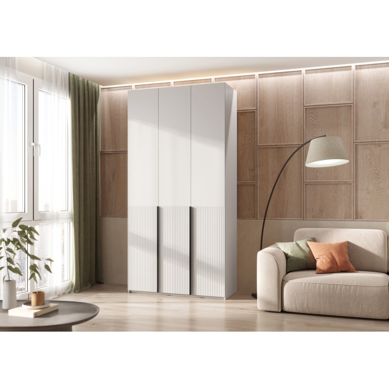 Шкаф 3-х. дв. арт.24.42.1 фасад МДФ браш вайт/каркас ЛДСП белый 1200х508хh2400мм с двумя ящиками Марвэл