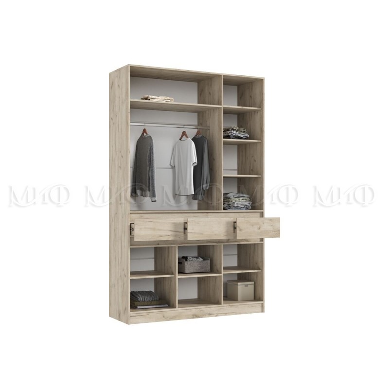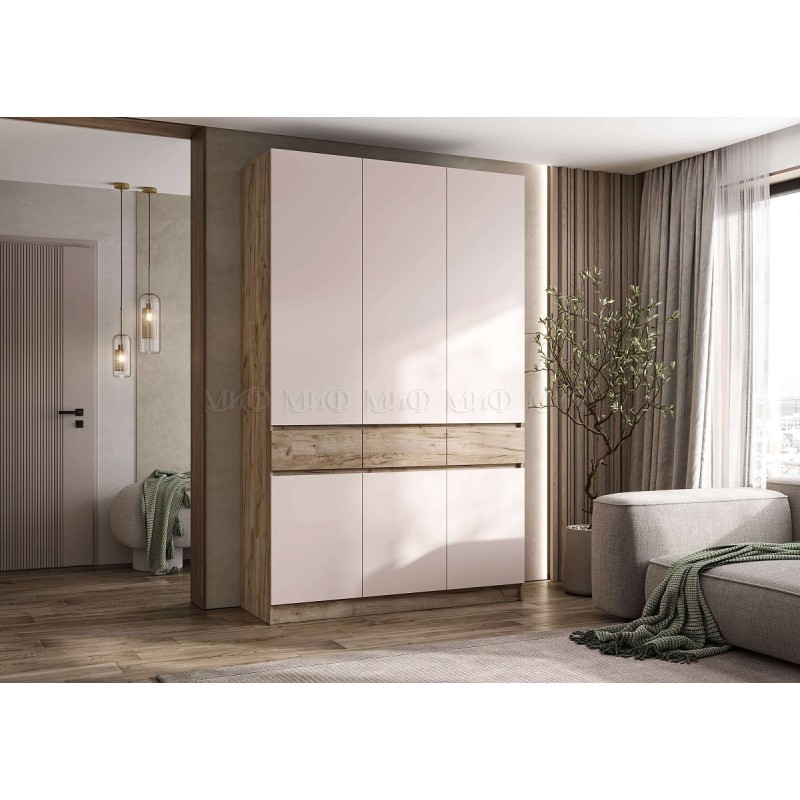 Шкаф 3-х. дв. арт.24.17.1.4 фасад ЛДСП кашемир/дуб крафт серый/каркас ЛДСП дуб крафт серый 1500х520хh2400мм Роджинамиф